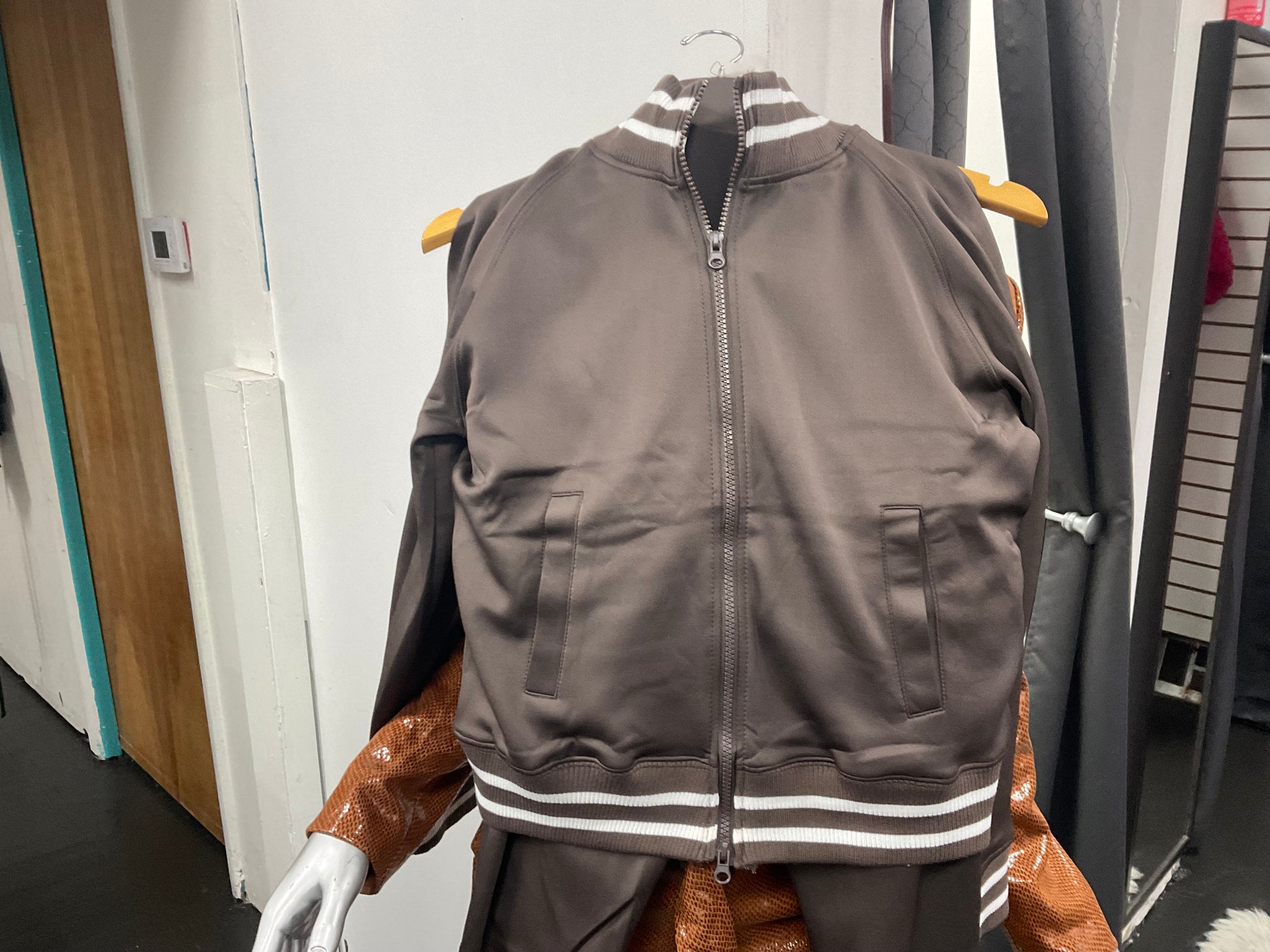 Double zipper jacket and jogging pants with a drawstring with white stripes