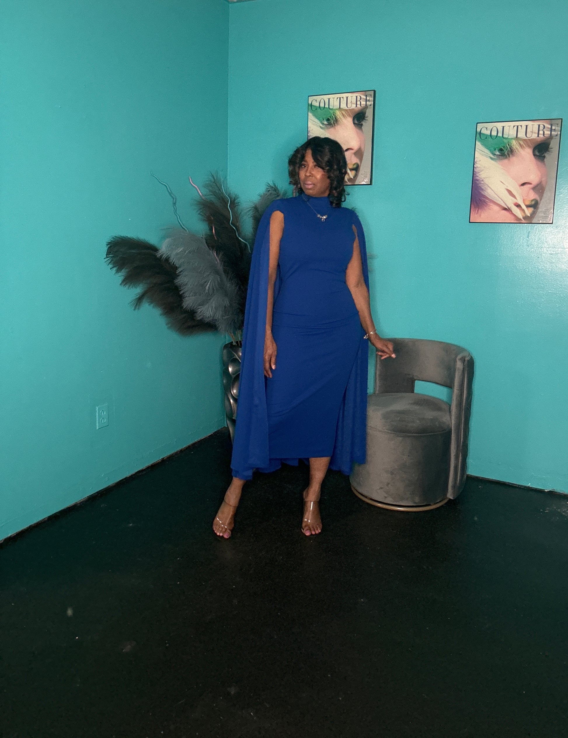 This beautiful bodycon dress has a wonderful stretch with shoulder capes on each side and a back zipper