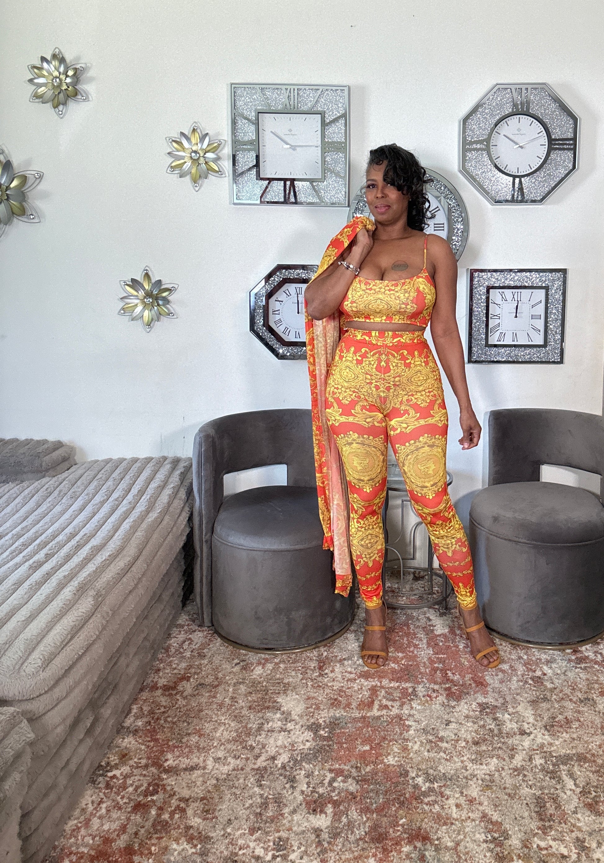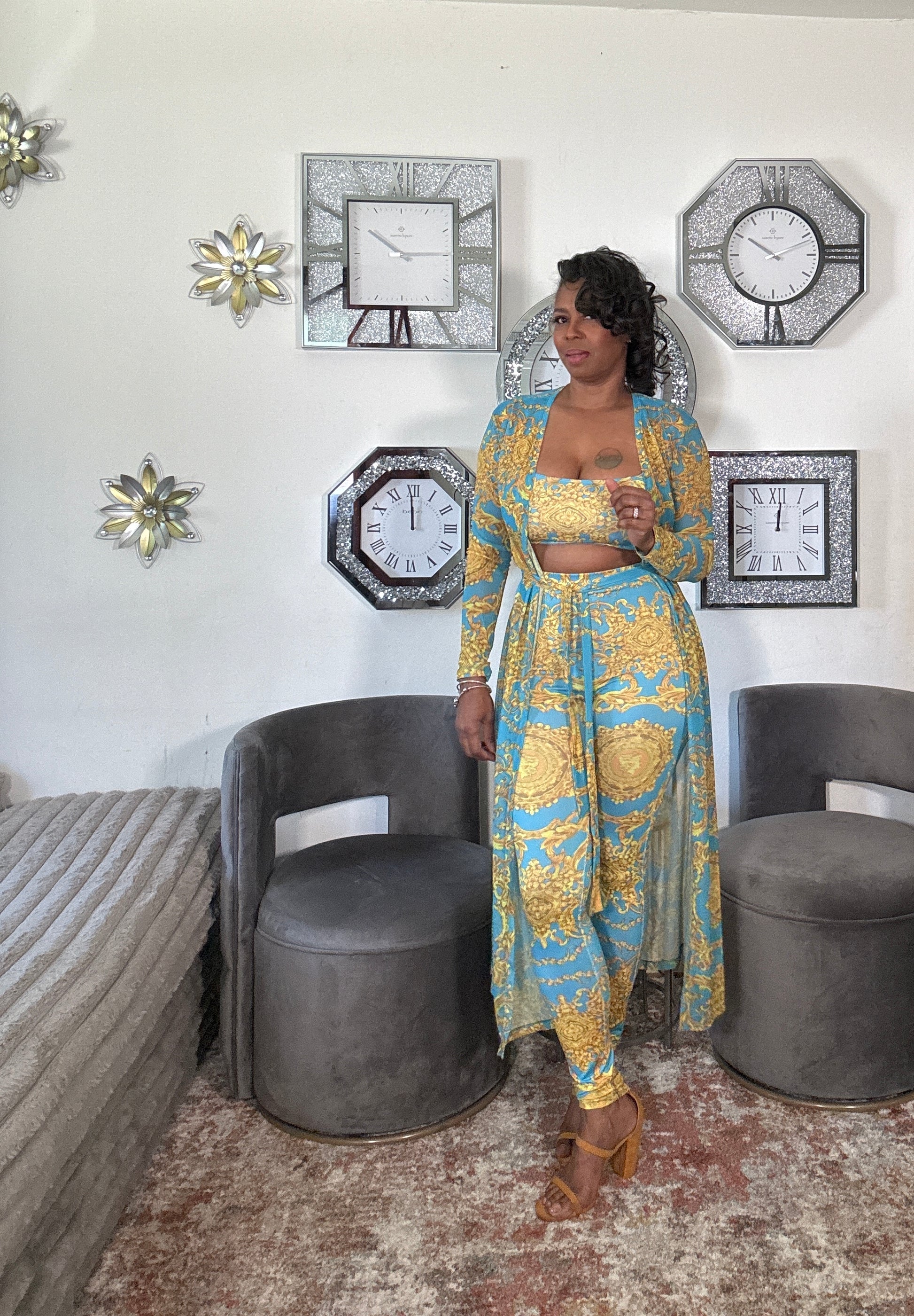 Beautiful three piece set crop top, leggings and sheer light weight cardigan this set it tall girl friendly