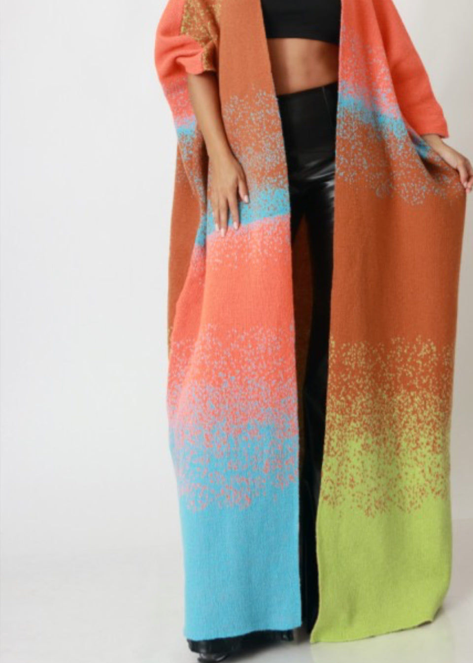 Multiple color maxi fleece cardigan