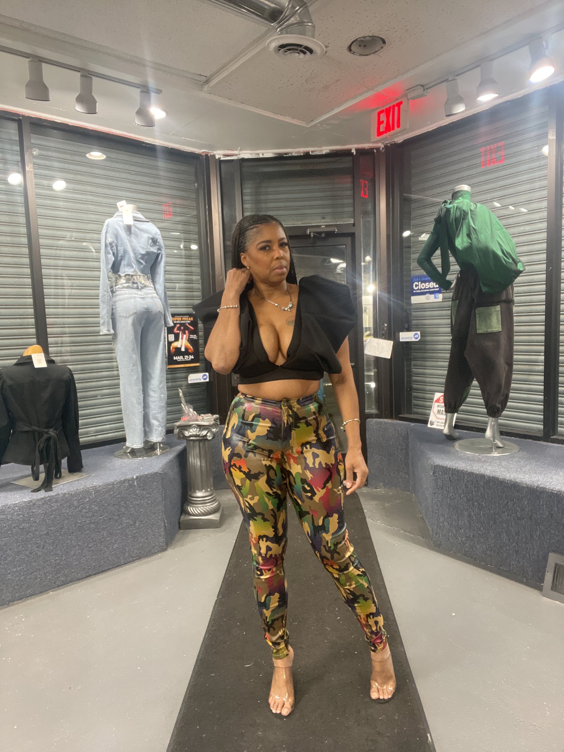 This is a crop top made of Scuba material which is a light weight spongy fabri